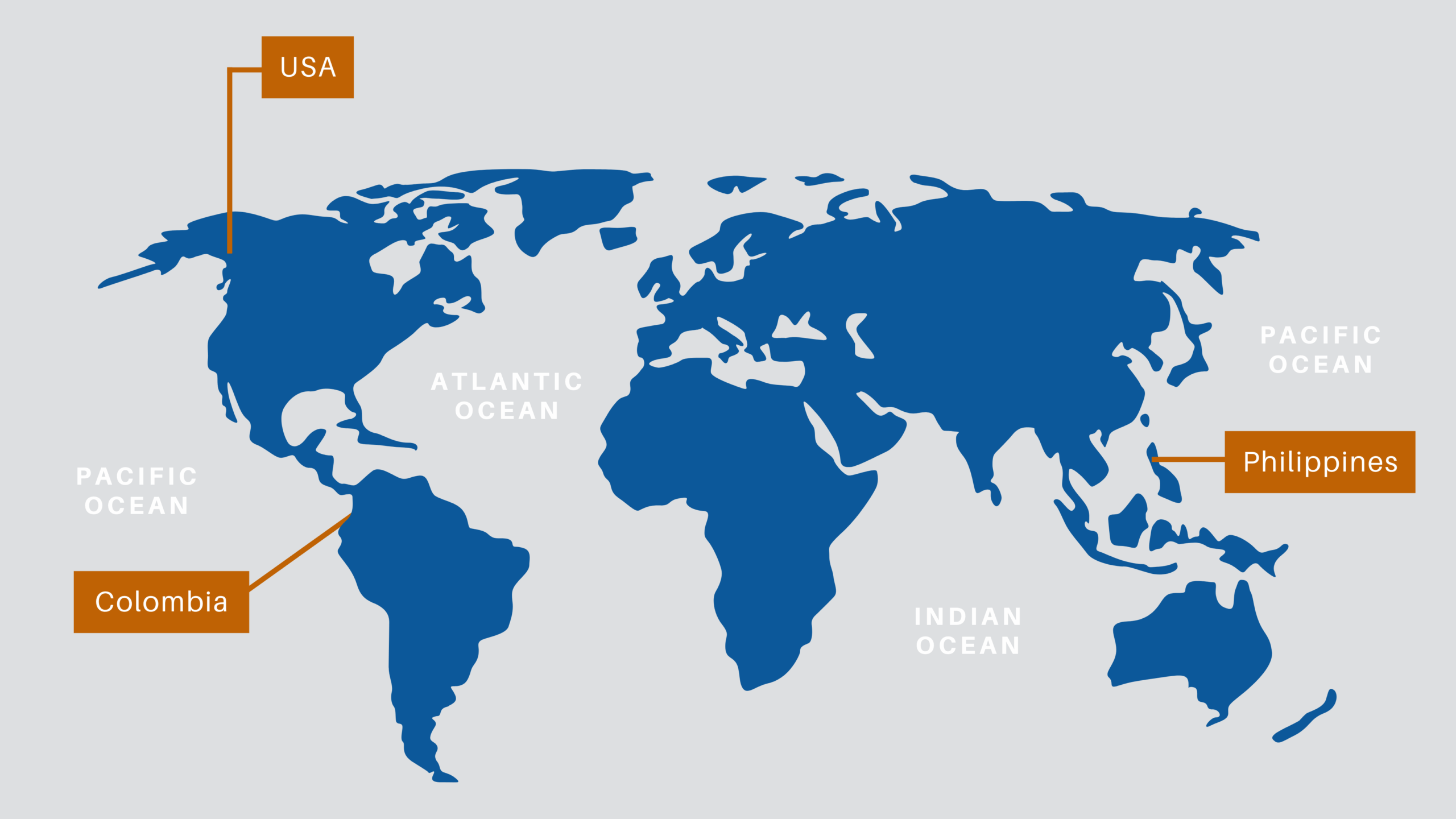 🇺🇸 U.S., 🇨🇴 Colombia, 🇵🇭 Philippines